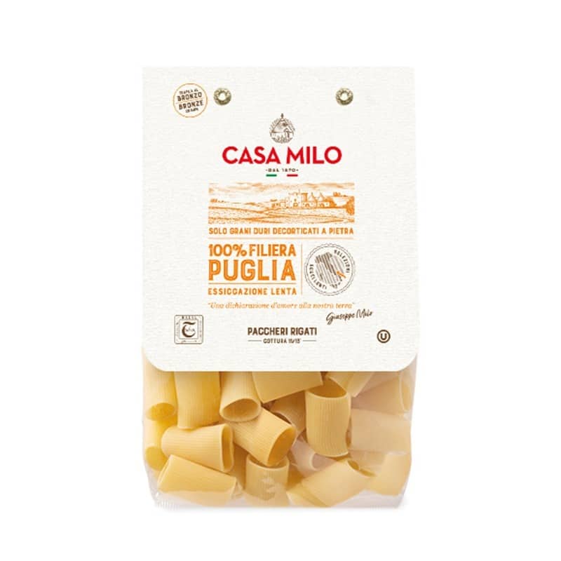 Extruderade bronsformar, en traditionell metod som gör att pastan blir porös och sträv, fast och perfekt för att hålla alla smaksättningar.